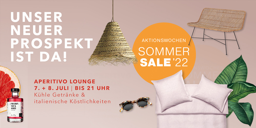 Entdecken Sie unsere aktuellen Sommer'22 Artikel - die aktuellen Trends und Tipps sowie Schönes für die Outdoor-Saison! Viele aus unserem aktuellen Prospekt haben wir hier für Sie im Online-Shop bereit gestellt, weitere Angebote finden Sie auch in unserem Prospekt PDF.