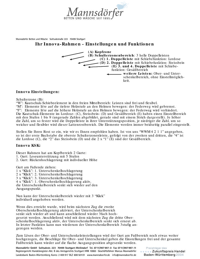 Bedienungs- und Handhabungsanleitung Innova Motorrahmen mit (kabelgebundener) Fernbedienung