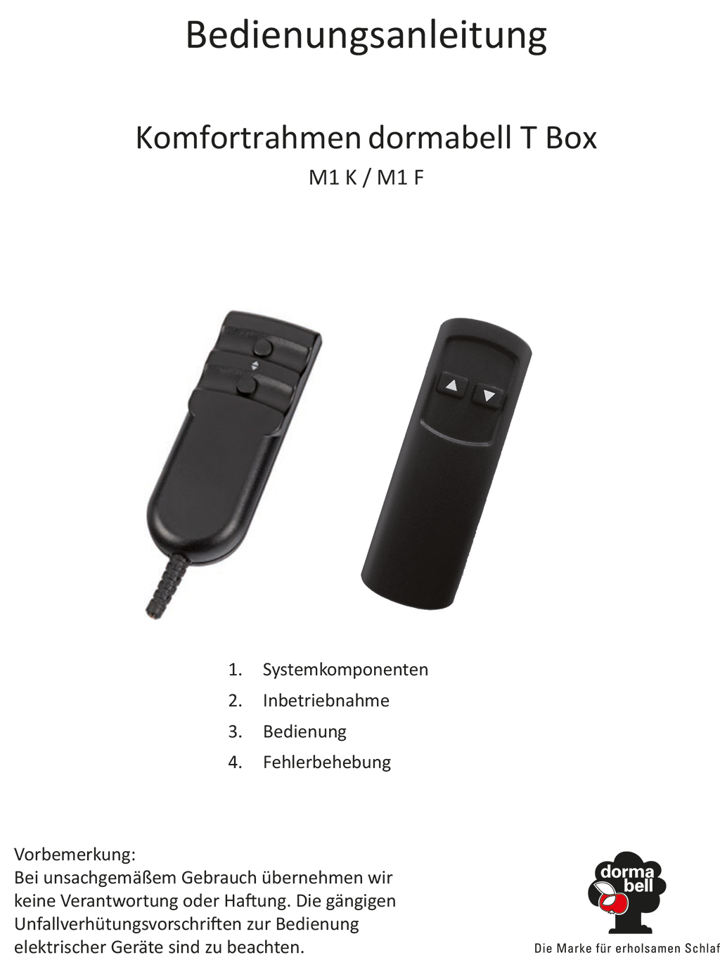 Bedienungsanleitung Komfortrahmen dormabell TBox M1 K / M1 F (0,8 MB)